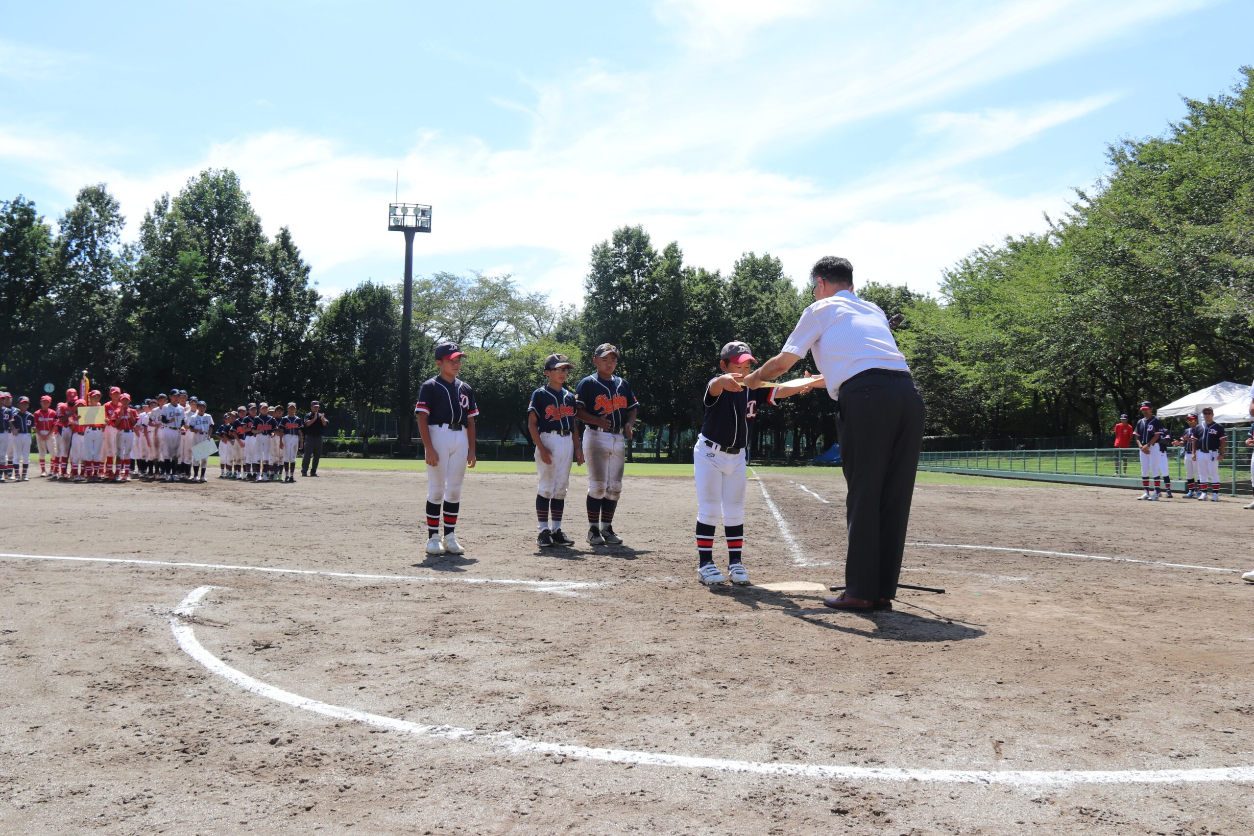 続いて、3位の松山リトルファイターズスポーツ少年団と、大東スポーツクラブにもトロフィーと賞状が贈られました。